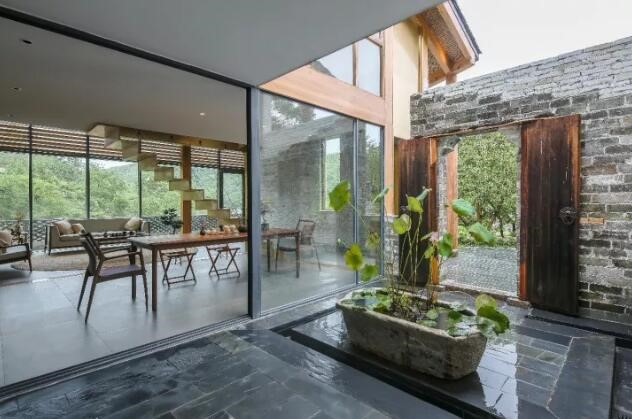 建筑作品对于人们而言不仅影响了未来,而且还记录与传达了过去。“不仅废墟,神庙、学院、宫殿、住宅都告诉我们,人们曾经希望什么,为什么而奋斗,有什么成就,遭受什么苦难。”“龙闲居”的前身是一座残破的废弃老宅,被杂草和灌木覆盖,屋顶与墙体严重损坏到抬头可以直接望见天空。安徽铜陵站的奇迹创造者建筑设计师庄子玉,作为德国RSAA建筑事务所的合伙人,在建筑界凭借着“鼓楼七号院”,张家口基督教堂等作品早已一展自己对于过去与未来,传统与现代的完美结合。在“龙闲居”的设计上,这位擅长将建筑重构空间,组合时空的设计师光是施工设计图就画了十几张,最终将残墙一分为二,增加了可品茗,赏花,作画的中式庭院,同时也配上了漂浮通透的玻璃观景平台,与古村落相融又出挑。新墙的部分则加入了当地其他建筑上的老砖,并将新砌筑的部分刷上了徽州民居常见的白漆,立柱与屋面也采用了回收自老民居的古瓦老料,在回应本土的同时也体现了可持续的当代生态理念。