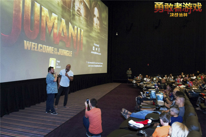 早在11月24日,巨石强森就宣布自己将带着新片《勇敢者游戏:决战丛林》回到家乡夏威夷,并在语气中吐露出万分的期待。而昨日,巨石强森和“阿宝”杰克·布莱克的出现也让来自世界各地的媒体和观众兴奋不已。一开场,强森就瞬间带入回家的感觉,为“阿宝”杰克·布莱克解释夏威夷的用词和文化。而在和到场媒体亲密互动之后,巨石强森颇感“吃醋”地跟杰克·布莱克透露,“现场有你一个大粉丝,他只有11岁”,而杰克·布莱克则满脸骄傲地回答说“我们这样的小身材也是会有大粉丝的”。