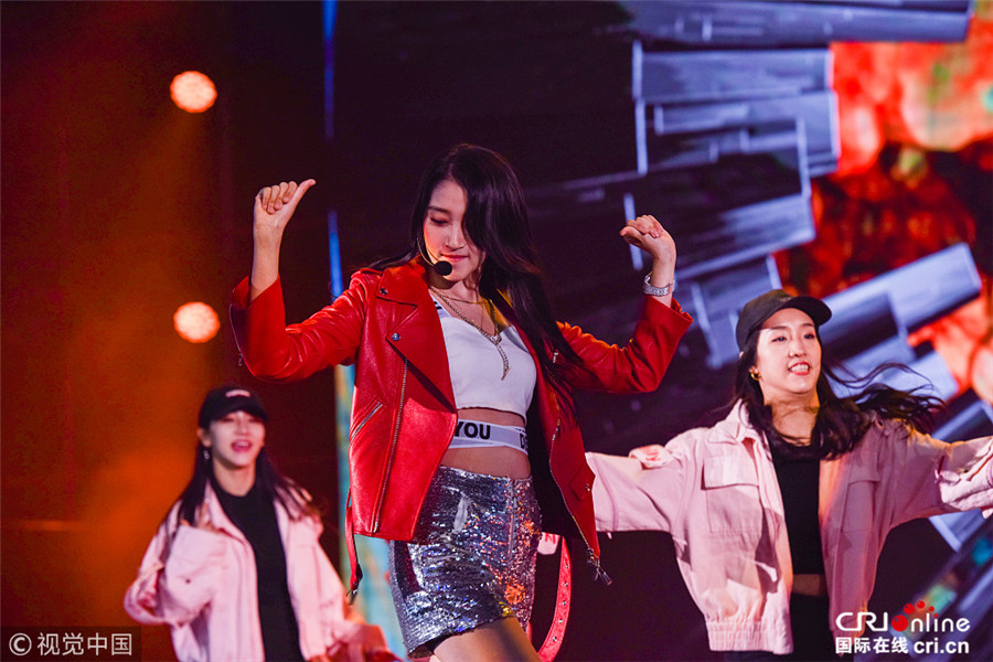 2017年12月2日,四川省成都市,关晓彤参加某游戏公司嘉年华活动,并为自己所代言的《剑灵》3D MMORPG次世代人气游戏,演唱主题曲《灵感与你彤行》。关晓彤身穿银色短裙配红皮衣,又酷又美,在现场边唱边挑,一双逆天大长腿惊艳全场,人美腿长还才艺满满,难怪成功“俘虏”鹿晗。视觉中国