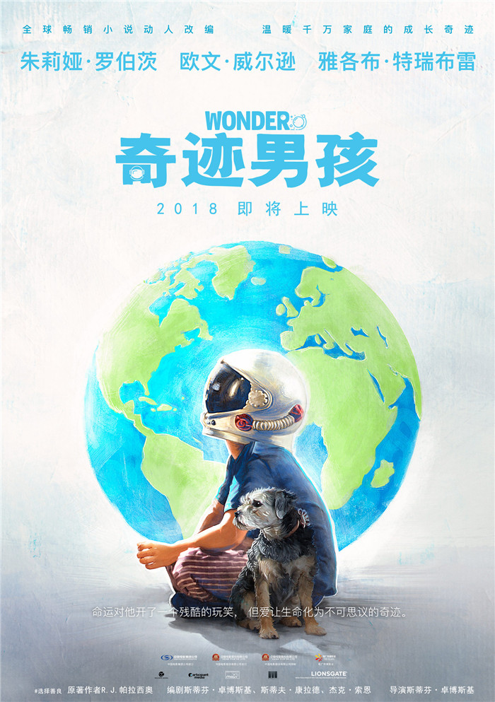 由斯蒂芬·卓博斯基执导,朱莉娅·罗伯茨、欧文·威尔逊、雅各布·特瑞布雷主演的暖心励志电影《奇迹男孩》宣布有望引进。今日片方发布“我的世界”手绘版海报,宇航员头盔、地球等元素描绘出了奥吉对于未来的无限遐想,电影温暖治愈的风格也可见一斑。