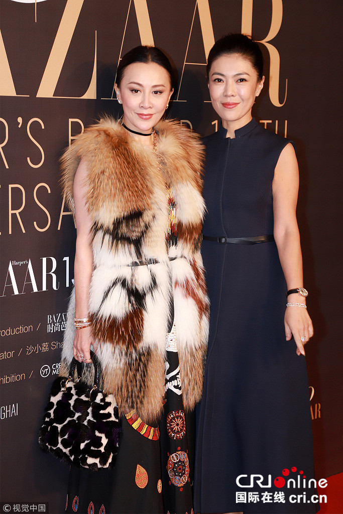 2017年12月21日,上海,破界BAZAAR150周年时尚艺术大展开幕典礼。刘嘉玲、苏芒、林允等现身。刘嘉玲皮草加身霸气与苏芒斗气场 ;林允可萌可攻。老么劲/视觉中国