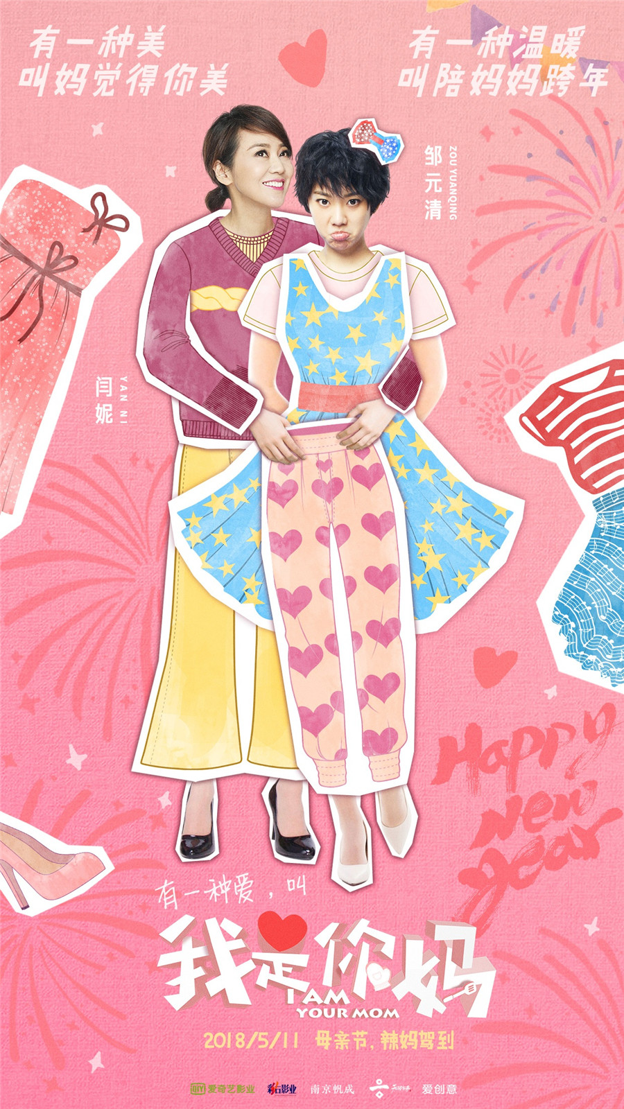 由闫妮、邹元清主演的都市温情轻喜剧《我是你妈》今日发布了一款新年贺图。别致复古的剪贴画风格以及闫妮和女儿邹元清的有趣互动都十分抓人眼球,不禁让观众们对这对母女的首次大银幕合作更为期待。影片将于2018年5月11日母亲节档正式上映。