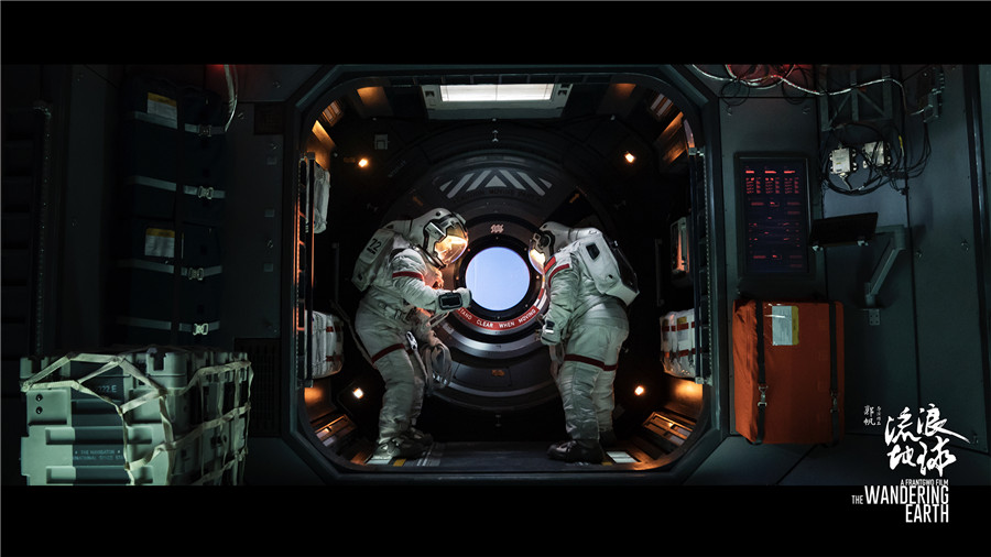 《流浪地球》曝现场工作照 吴京穿航天服上太空