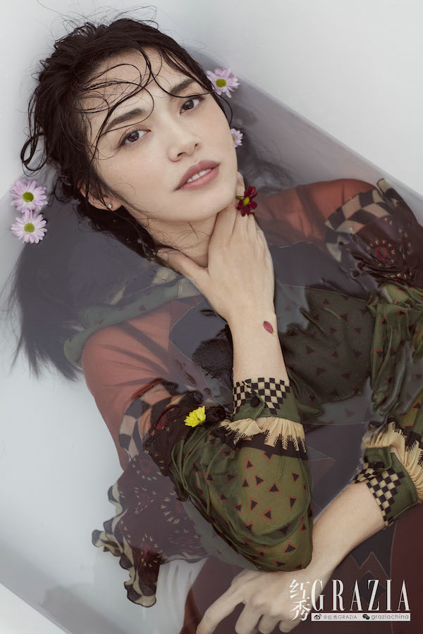 姚晨登时尚杂志封面 置身水中化身“出水芙蓉”