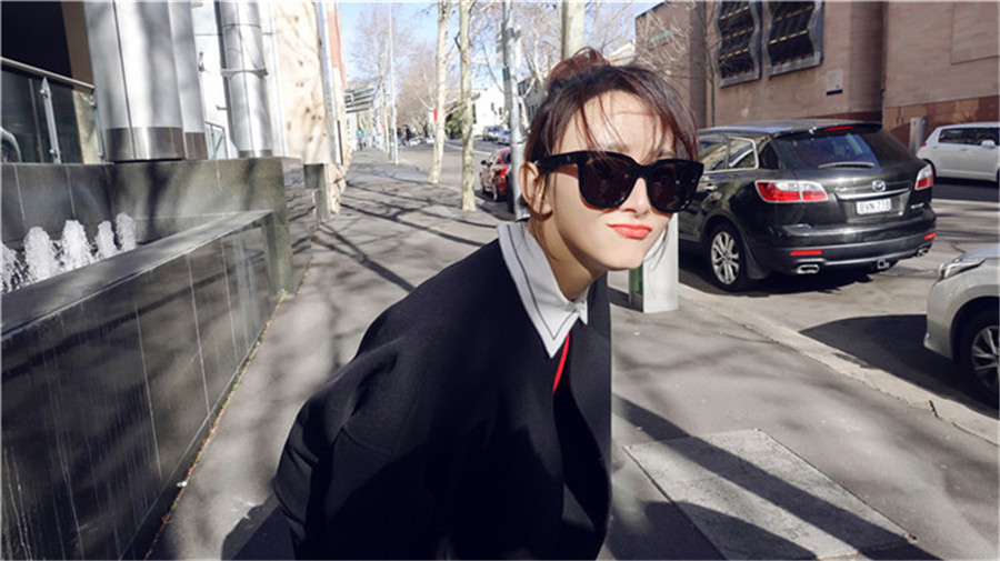 胡静悉尼吹“时尚风” 红黑经典造型