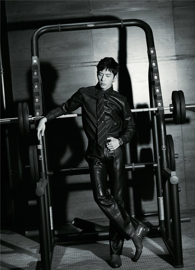 近日,一组井柏然最新写真曝光,大片以黑白色调为主,小井先生在众多健身器械中,身穿皮衬衫搭配立体剪裁皮裤,斜纹英伦俱乐部领带,都市摩登风格满溢,绅士雅痞气质展露无遗。
