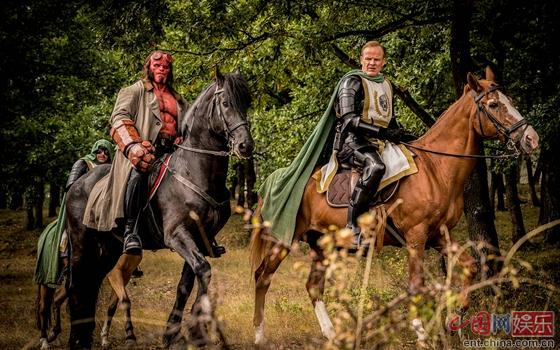 这张剧照中穿着黑色背心的地狱男爵真是秀了一把好身材,一身结实的肌肉配上红色的皮肤非常威武英俊!