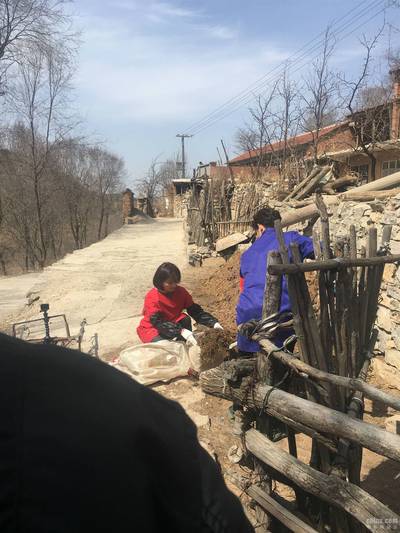 除了用小推车装肥料以外,刘涛和王凯还亲自上手一人扛了两袋肥料。