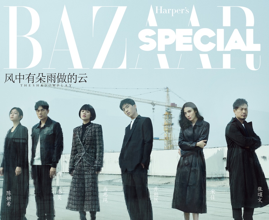 井柏然和马思纯虽面对面一虚一实,眼神游离,也预示电影里纠缠不清的爱情线。另一边陈妍希侧躺在秦昊腿上的照片则是“暧昧”了许多,配合城市霓虹灯,冲击力十足。值得一提的是,不论是室外集体硬照,还是室内迷幻大片,观众始终需要透过镜子、玻璃才能看清主创“真容”,这也与电影“拨开迷雾方见真相”的主题相契合。就像《时尚芭莎》的镜头记录众位主创在影片中的故事一样,相信电影也会帮我们记住我们和我们的时代。