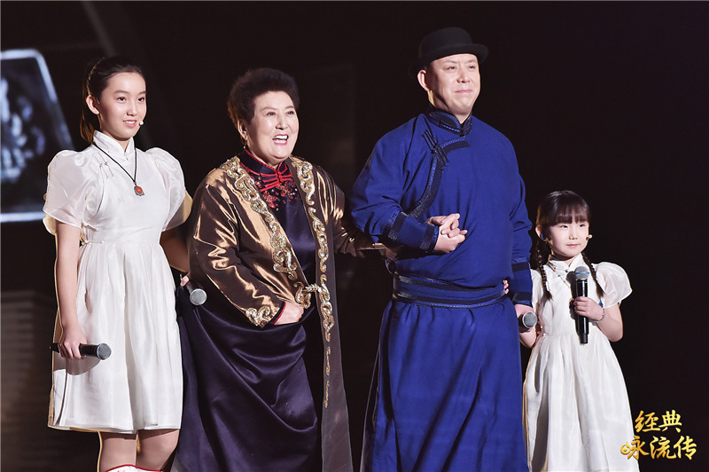 有着醇厚嗓音的德德玛,被誉为“草原上的夜莺”。年过七旬的她和家人共同唱响经典,带来一曲《阴山雪》。几十年来,德德玛演绎的草原之歌,大家耳熟能详,廖昌永更是表示自己是听着德老师的歌长大的。为了和德老师有更近距离的歌唱“共鸣”,廖昌永身子微倾,单膝跪地,同行动不便坐在椅子上的德德玛,一起演唱《父亲的草原母亲的河》这首草原经典,令人动容。