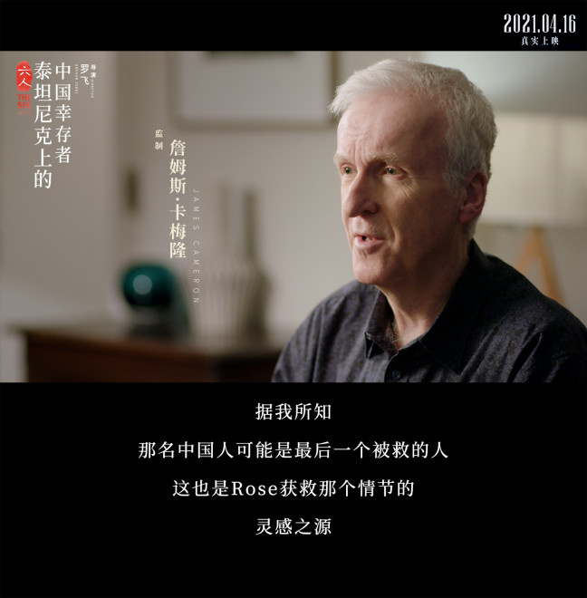 由罗飞执导、好莱坞殿堂级导演詹姆斯·卡梅隆担任监制、首席研究员施万克讲述的纪录片《六人:泰坦尼克上的中国幸存者》(以下简称《六人》),将于4月16日在中国上映。