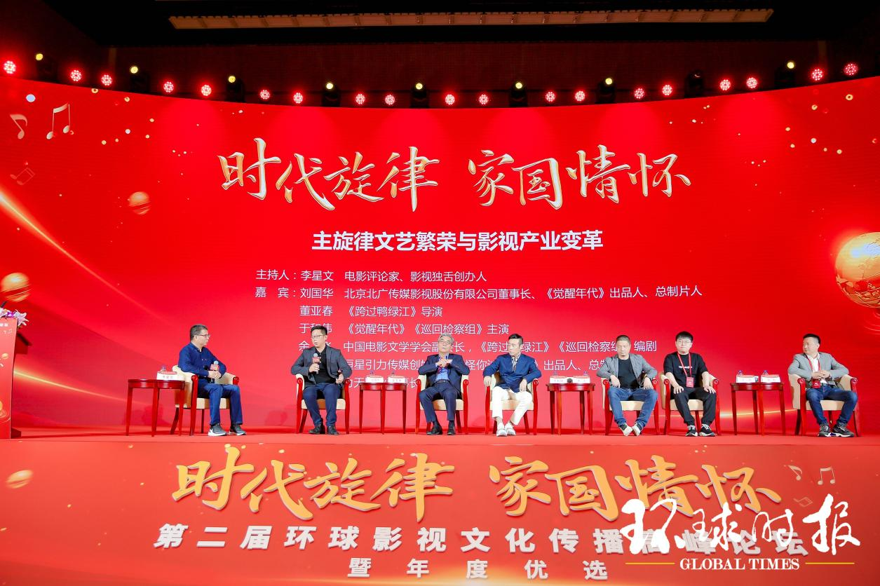 以“主旋律文艺繁荣与影视产业变革”为题的论坛邀请了《觉醒年代》出品人、总制片人刘国华,《跨过鸭绿江》导演董亚春,《巡回检察组》《觉醒年代》主演于和伟,中国电影文学学会副会长、《跨过鸭绿江》《巡回检察组》编剧余飞等就论坛主题进行了深度探讨。刘国华表示:“创作时要坚持守正创新,尽全力做到历史真实和艺术真实的完美融合。”董亚春说:“我的指导思想和座右铭就是用心创作,每一个环节都不能掉以轻心,都要非常仔细、认真慎重的对待。”于和伟说:“高、大、全是我们追求的人物的目标,而不是塑造方式,《觉醒年代》中的陈独秀好就好在,他不是一个完美的人,他也有优缺点,这样才会引起共情,让更多的人喜欢去看”。余飞分享了创作的三点心得,他表示:“第一点是把伟大人物当普通人写,第二点就是从历史的缝隙中寻找矛盾冲突,第三点是寻找英雄人物的惯性和亮点。”