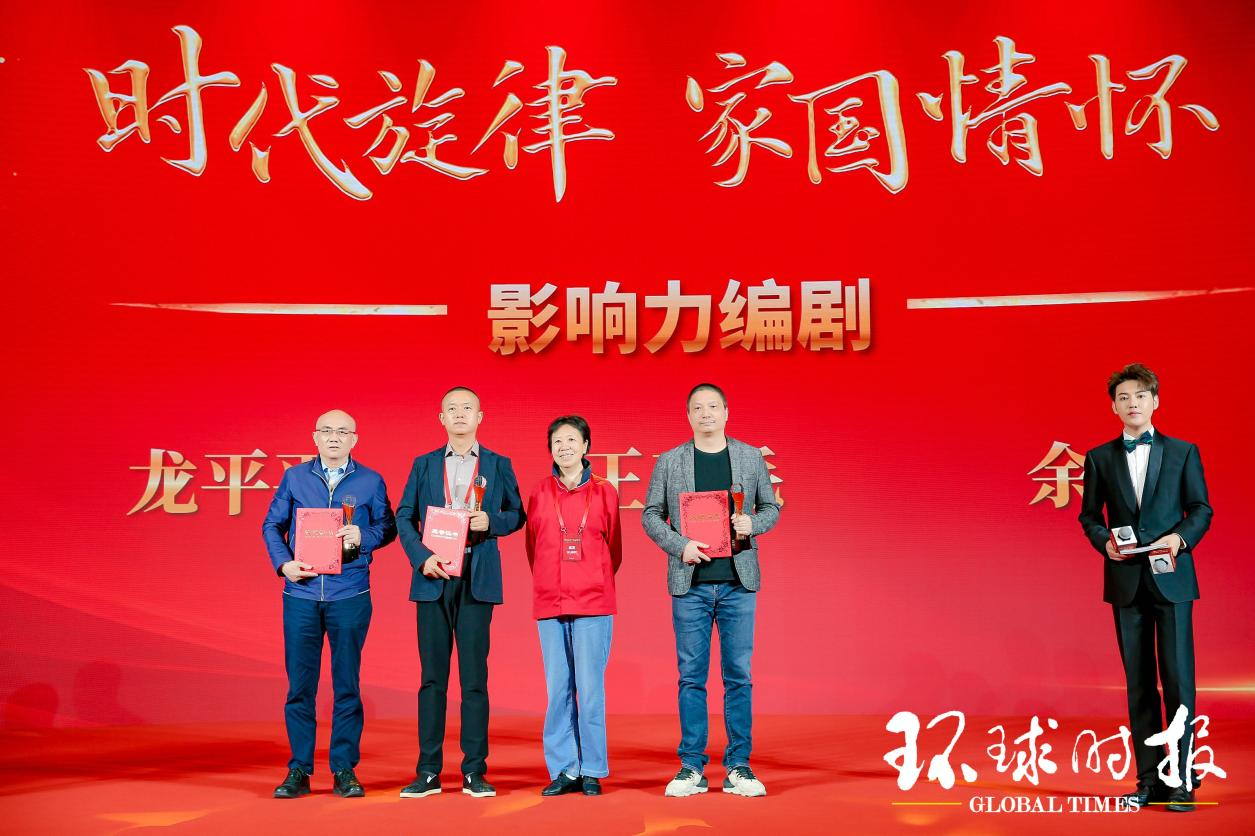 《觉醒年代》编剧龙平平、《山海情》编剧王三毛、《跨过鸭绿江》《巡回检察组》编剧余飞获得“影响力编剧”称号。