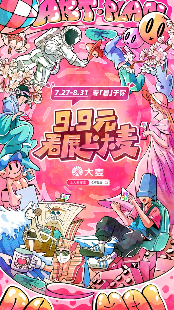 7月27日,大麦发起暑期展览“大众艺术计划”,联合全国数十家展商推出线上免费云看展、9.9元特惠线下看展、达人探展攻略、淘麦VIP艺术衍生周边等多重超值福利,以期在丰富暑期档线下文娱消费内容的同时,助力优秀展览艺术普及。