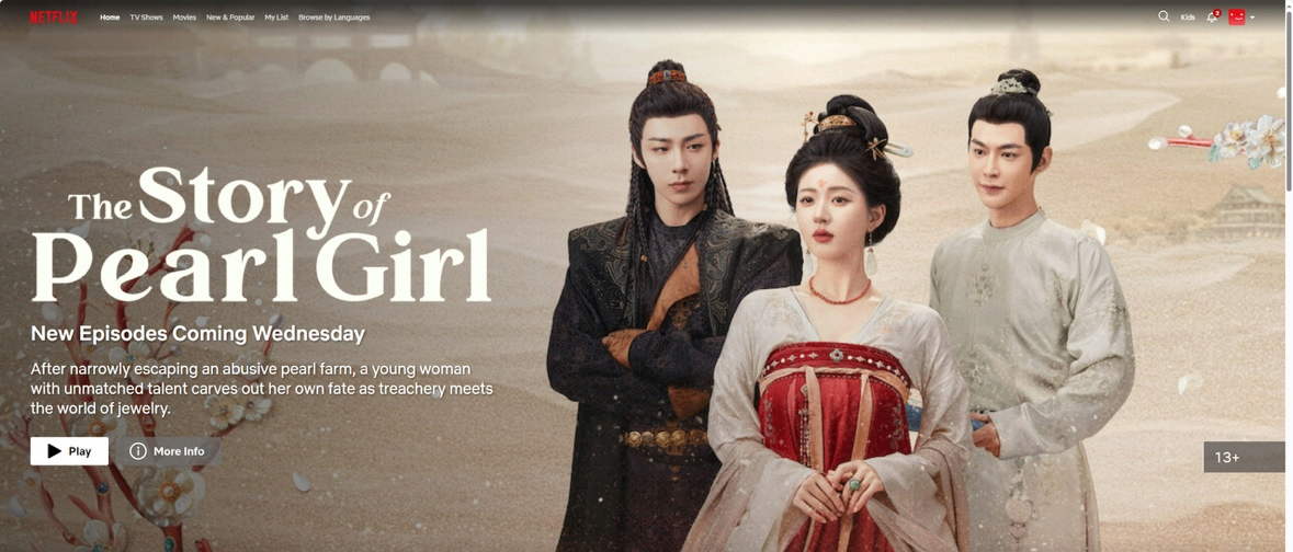 全球领先的流媒体平台Netflix海外上线优酷古装传奇剧《珠帘玉幕》。