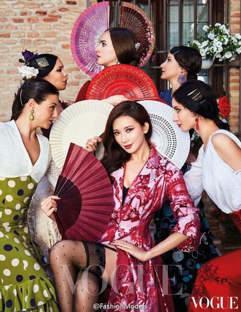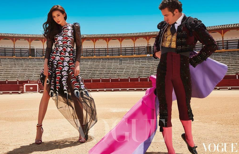 林志玲受邀登上Vogue 台湾版10月刊封面,奔赴热情似火的西班牙展开一段华丽的冒险,志玲姐姐更是在拍摄中挑战了斗牛和弗拉明戈舞。(图片来源:微博账号“FashionModels”)