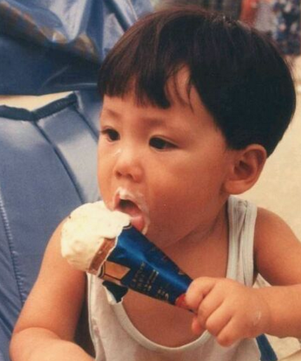 李弘基,小时候就这么爱吃,冰淇淋就是要吃到爽。